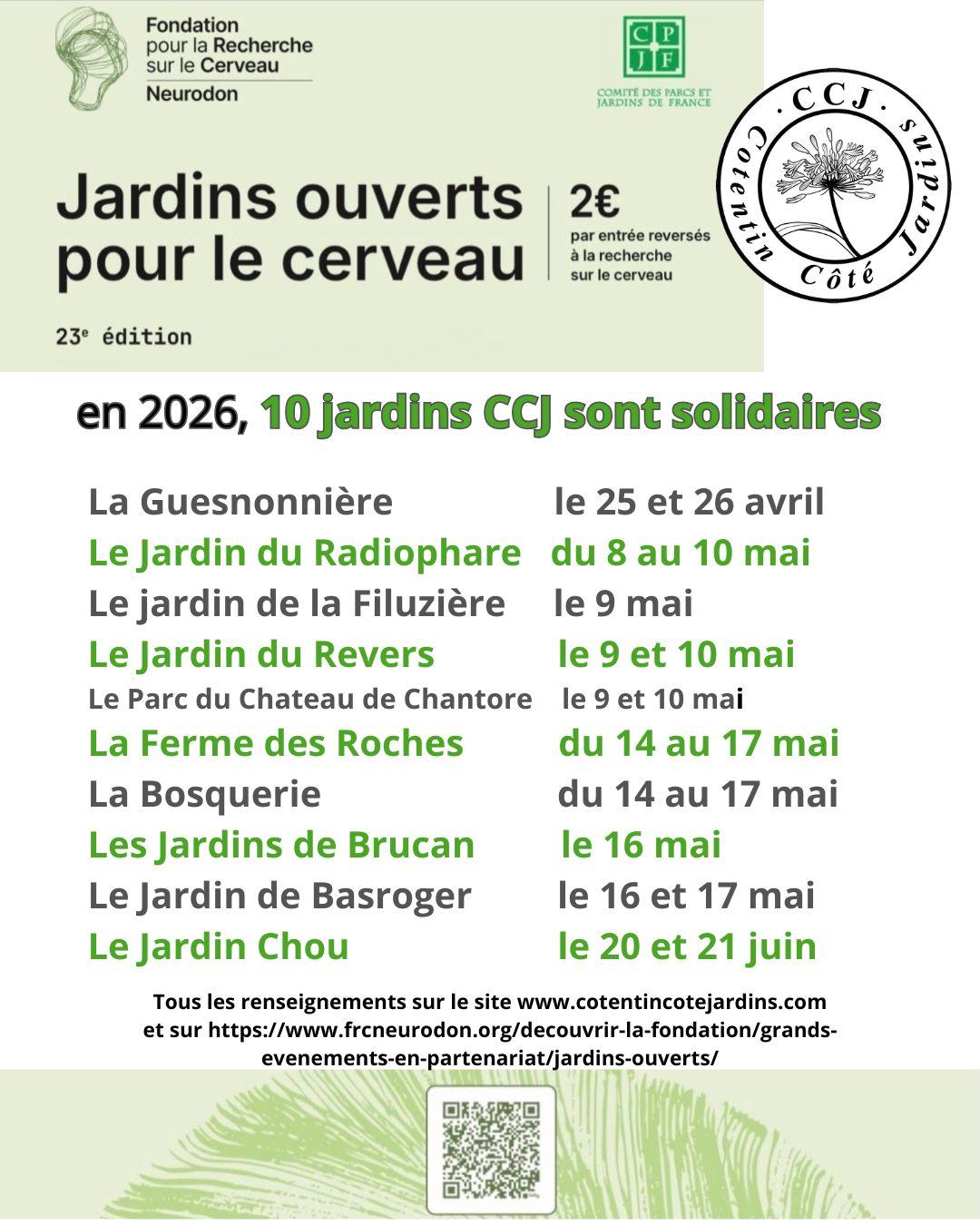 10 jardins sont solidaires de la 23ème édition de l'opération nationale Neurodon qui permet de financer la recherche sur le cerveau.